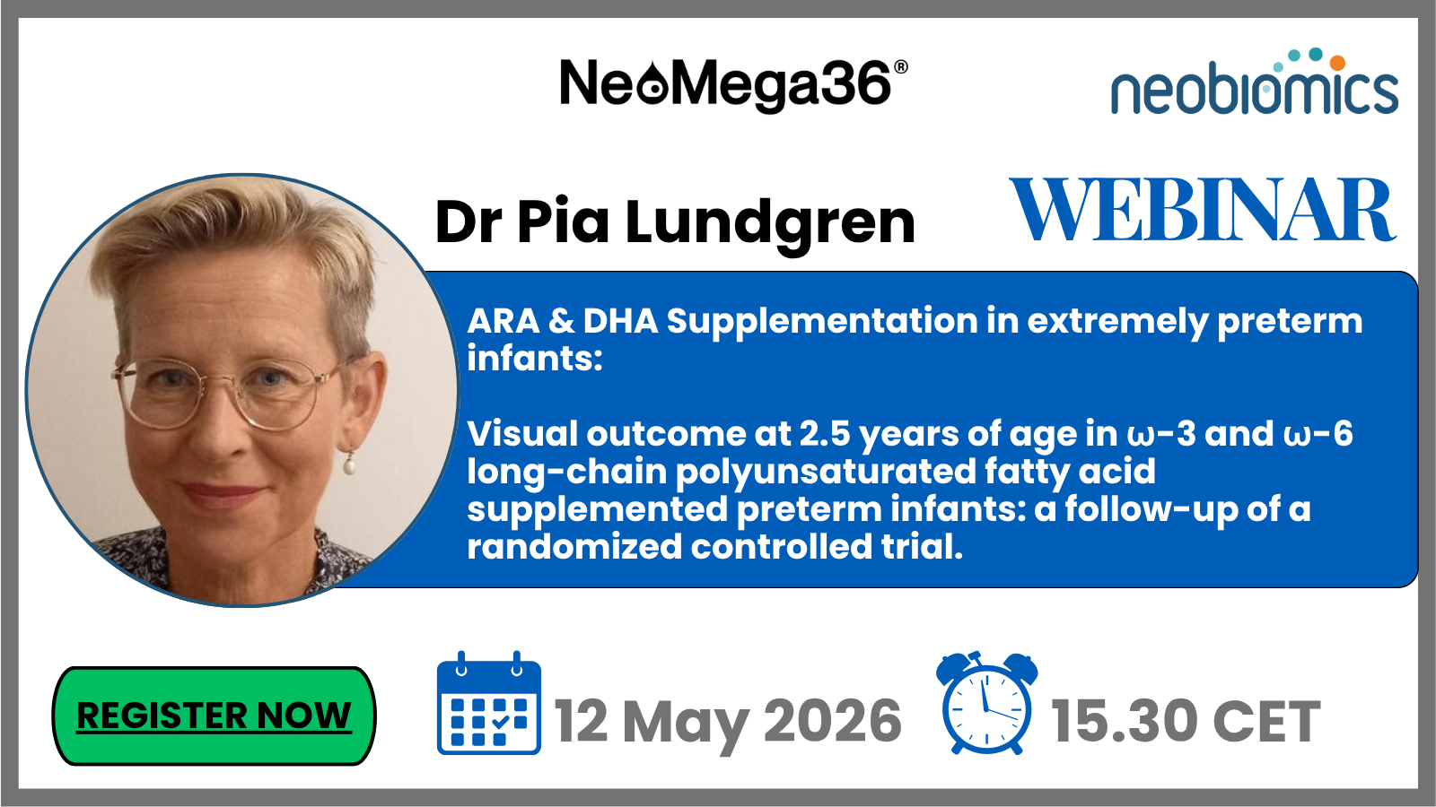 Why Should You Attend? Learn more about the research about arachidonic acid (ARA) and docosahexaenoic acid (DHA), that supports normal vision development in extremely preterm infants. Connect with fellow neonatology professionals around Europe, learn from each other and share best practices!